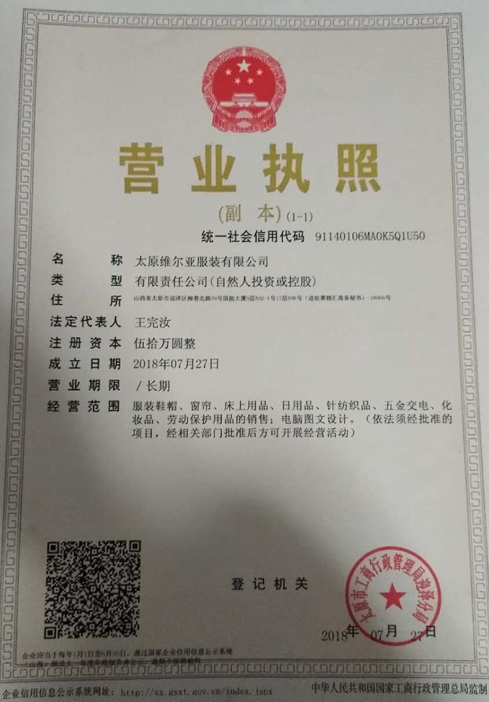 >> 資質證書 太原維爾亞服裝有限公司 - www.pangujihe.cn